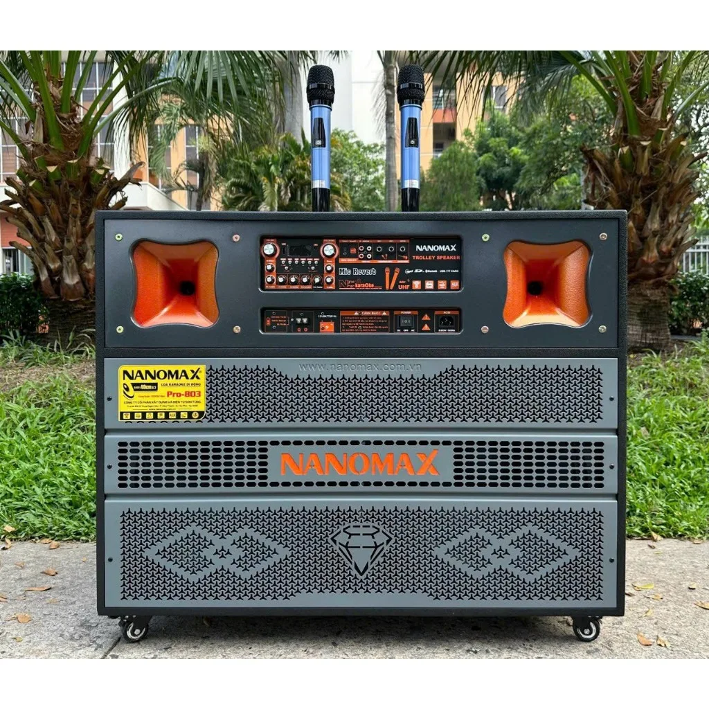 Loa kéo Nanomax Pro-803 được ráp bởi công ty điện tử Sơn Tùng và đi kèm với 2 micro không dây cao cấp, mang đến cho người dùng trải nghiệm karaoke chất lượng và tiện lợi (loa kéo tốt nhất hiện nay).