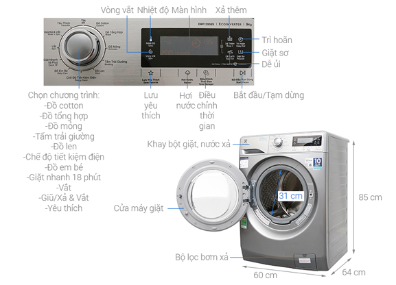 MÁY GIẶT ELECTROLUX 9KG INVERTER EWF9024BD thiết kế sang trọng hiện đại hiệu quả giặt giũ tuyệt vời, giúp quần áo luôn sạch đẹp và mềm mại. Khối lượng giặt 9 kg phù hợp cho gia đình có từ 6 thành viên trở nên.