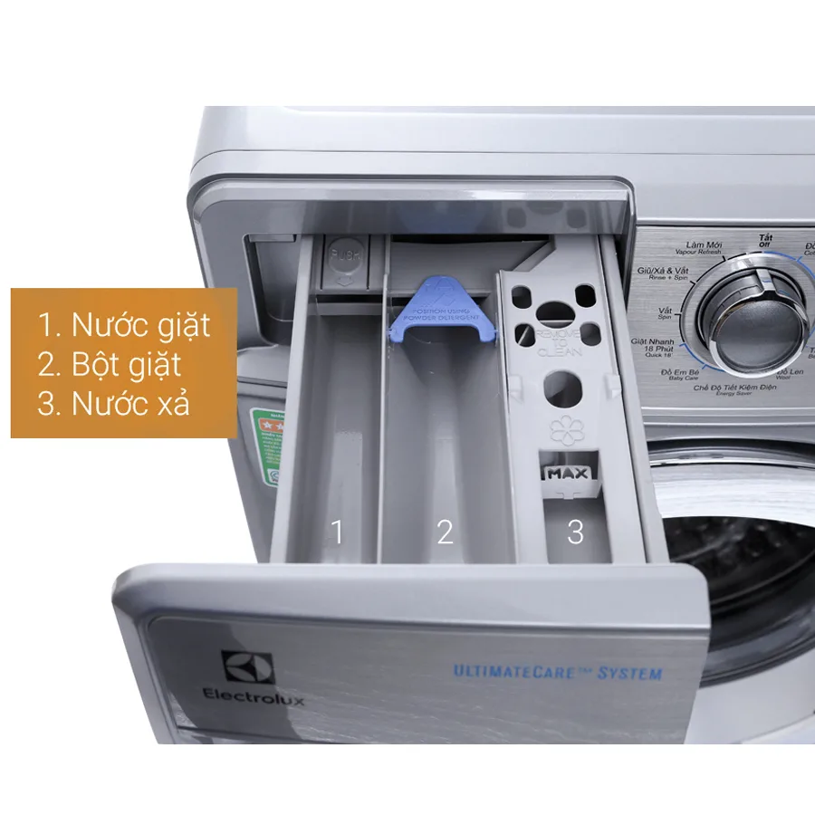 MÁY GIẶT ELECTROLUX 9,5KG INVERTER CỬA TRƯỚC EWF9523BD có thiết kế tinh tế sang trọng làm sáng không gian của gia đình bạn. Khối lượng giặt 9,5 kg phù hợp cho những gia đình có từ 6 thành viên trở lên.
