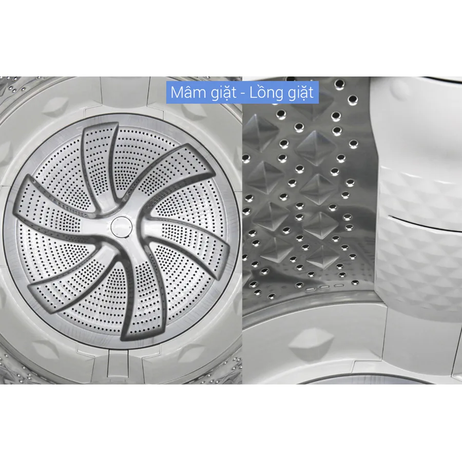 Lồng giặt ngôi sao pha lê với nhiều gờ nổi hình ngôi sao giúp chà xát đồ giặt tăng khả năng giặt giũ vượt trội.
