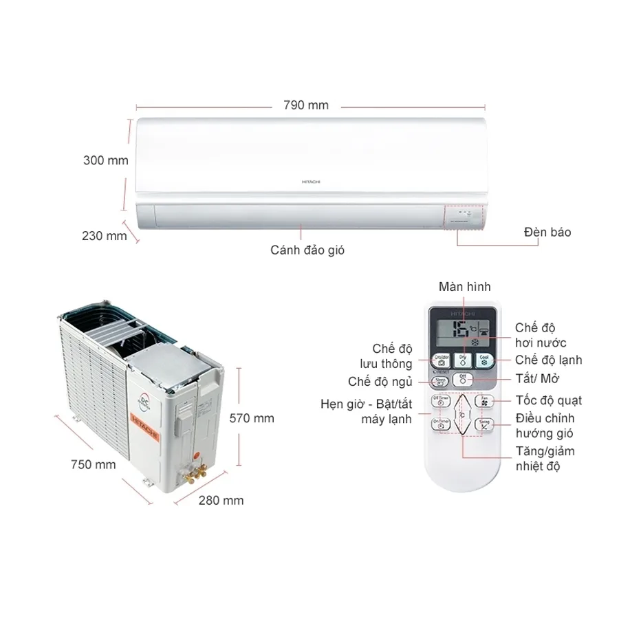 Máy lạnh Hitachi 1.5HP được thiết kế nhỏ gọn trên gam màu trắng tinh tế tạo cảm giác sang trọng giúp tô điểm cho không gian nhà bạn.
