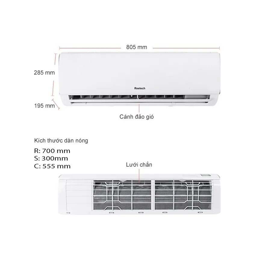 MÁY LẠNH REETECH 1.5 HP được thiết kế với kiểu dáng thanh nhã, gọn nhẹ phù hợp với mọi không gian sống.