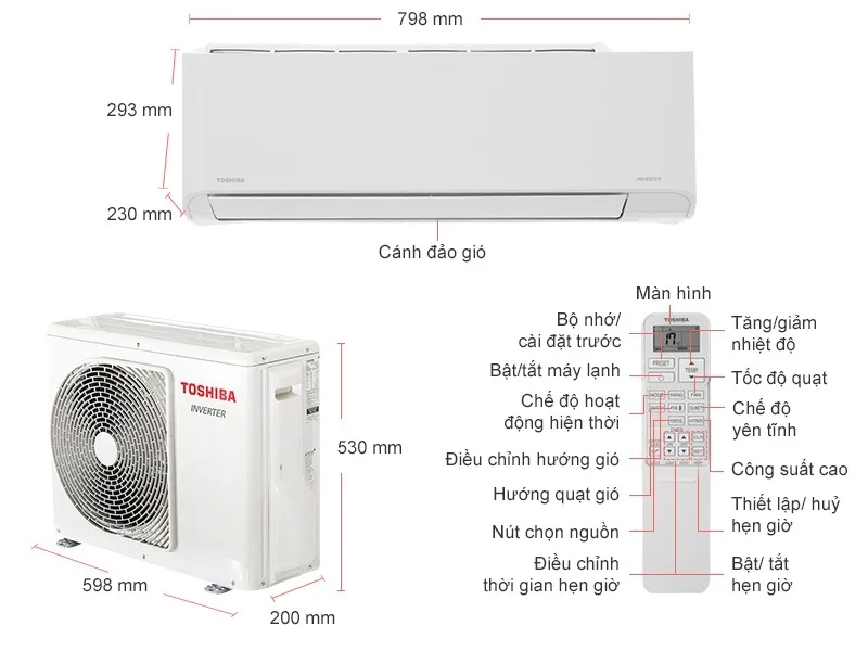 Máy lạnh Toshiba 1HP inverter được thiết kế với kiếu dáng sang trọng tinh tế, làm nổi bật nên không gian nhà bạn.