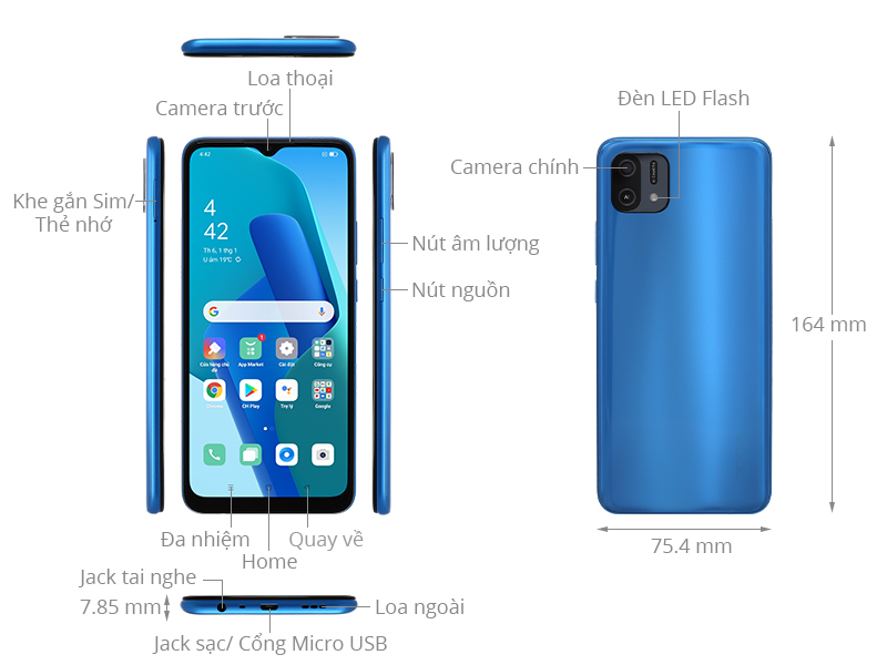 | KÍCH THƯỚC | Dài 164 mm - Ngang 75.4 mm - Dày 7.85 mm - Nặng 175 g |