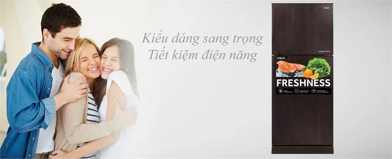 Tủ lạnh Aqua 143L-T150FA 2 cửa sở hữu thiết kế kiểu dáng chữ nhật góc cạnh cùng màu sắc độc đáo, mới lạ tạo điểm nhấn nổi bật cho không gian nội thất của bạn.