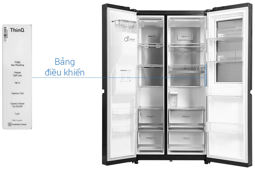 tủ lạnh LG Side by Side 674L, tủ lạnh LG GR-X257MC, tủ lạnh màu đen, tủ lạnh LG lớn, mua tủ lạnh LG, điện máy Lê Triều.