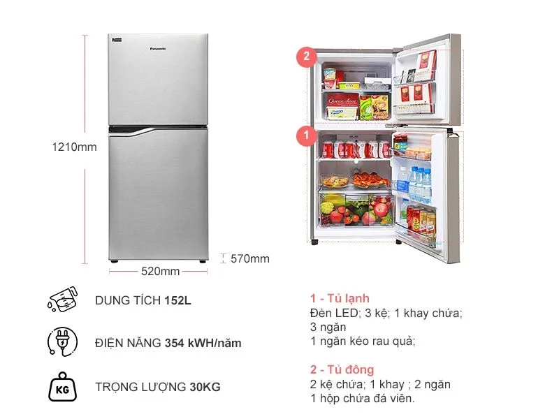 Sở hữu ngay tủ lạnh Panasonic 167L BA189PPVN ngăn đá trên tại Điện máy Lê Triều để trải nghiệm sự tiện nghi, hiện đại cùng giải pháp bảo quản thực phẩm thông minh.