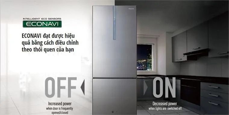 Ngoài ra tủ lạnh còn được trang bị bộ phận cảm biến Econavi hiện đại với chức năng cảm biến nhiệt độ bên ngoài lẫn bên trong , giúp tủ lạnh tự thay đổi công suất phù hợp với từng trường hợp .