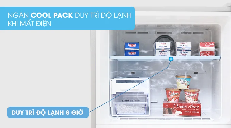 Không những thế tủ lạnh còn có khả năng làm lạnh và làm đá nhanh , đồng thời tủ lạnh còn được trang bị khay cool pack có khả năng duy trì 8 tiếng sau khi bị mất điện.