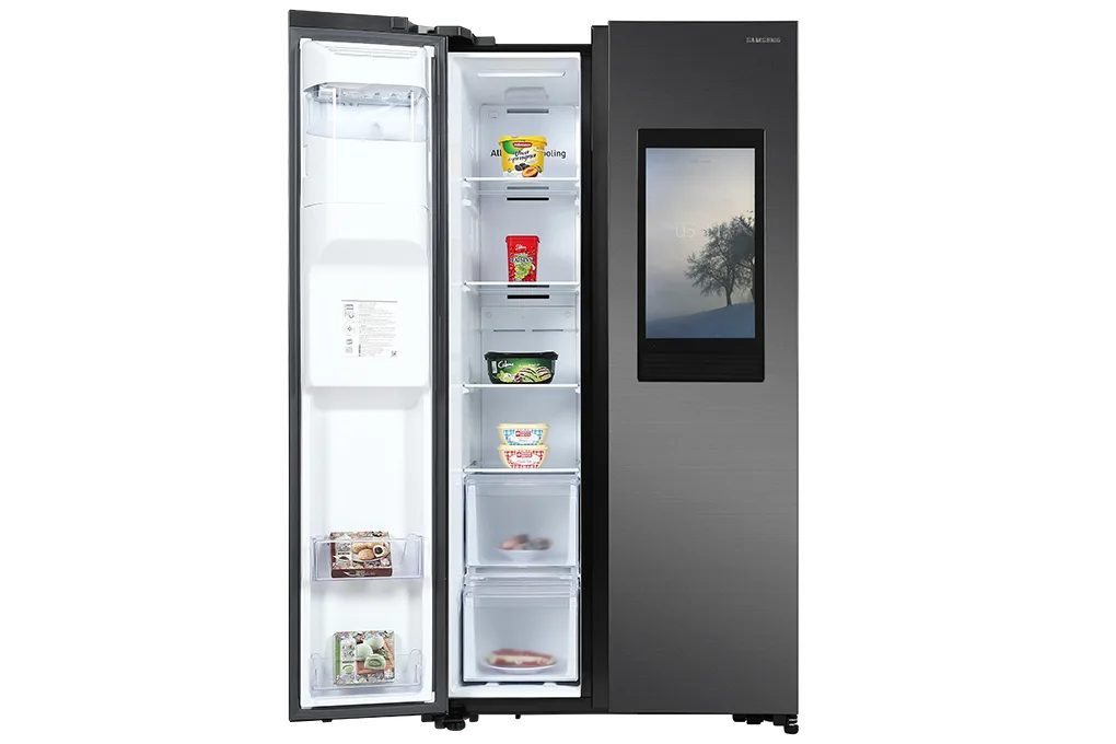 TỦ LẠNH SAMSUNG INVERTER SIDE BY SIDE 660L-RS64T5F01B4/SV được thiết kế với sang trọng tinh tế với bảng điều khiển bên ngoài tủ lạnh, cùng với đó tủ lạnh được hiện đại hoá với tính năng lấy nước từ bên ngoài tủ lạnh.