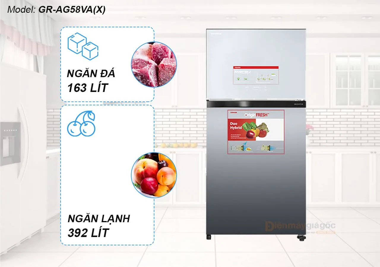 Dòng tủ lạnh Toshiba Inverter 555 lít GR-AG58VA (X) là một lựa chọn phổ biến với ngăn đá trên, được trang bị bảng điều khiển cảm ứng bên ngoài mang tính hiện đại. Thiết kế mặt gương của tủ lạnh 500 lit tạo ra một vẻ ngoài sáng bóng, có thể phối hợp màu sắc một cách tinh tế, tạo điểm nhấn cho không gian sống của mình.