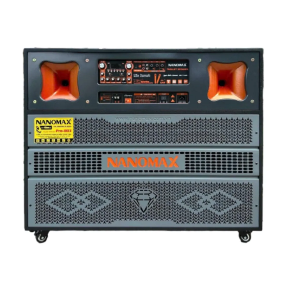 Loa kéo Nanomax Pro-803 là một mẫu loa tủ mới nhất được ra mắt vào tháng 10/2023. Được thiết kế đặc biệt cho mục đích karaoke, loa này sở hữu công suất lớn với 2 bass 40 + 2 treble và board công suất mạnh mẽ. Với công suất thực lên đến 500W, loa có khả năng mang đến trải nghiệm âm thanh sống động và mạnh mẽ, thậm chí có thể "chơi bung nóc" khi sử dụng.