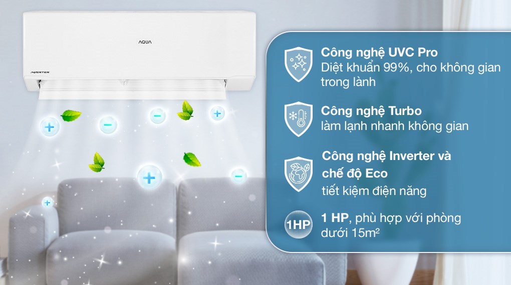 Tính năng hút ẩm của máy lạnh Aqua 2 HP tạo điều kiện khô thoáng cho căn phòng, mang lại sự dễ chịu cho người dùng trong những ngày thời tiết ẩm ướt.