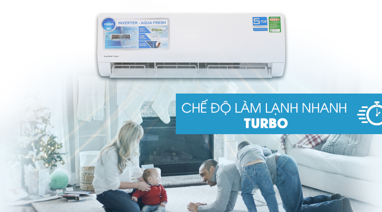 Chế độ làm lạnh nhanh Turbo của máy lạnh Aqua Inverter 2 HP AQA-RV18QA làm mát nhanh chóng chỉ trong 3 phút, nhiệt độ có thể giảm khoảng 1.5 độ C, tạo cảm giác mát lạnh hầu như ngay lập tức cho người dùng.