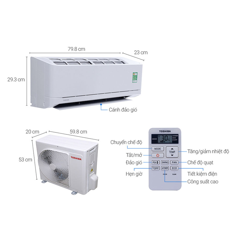Toshiba 1HP Inverter có các chế độ tiện ích như hẹn giờ, hút ẩm, Sleep Mode hay không?