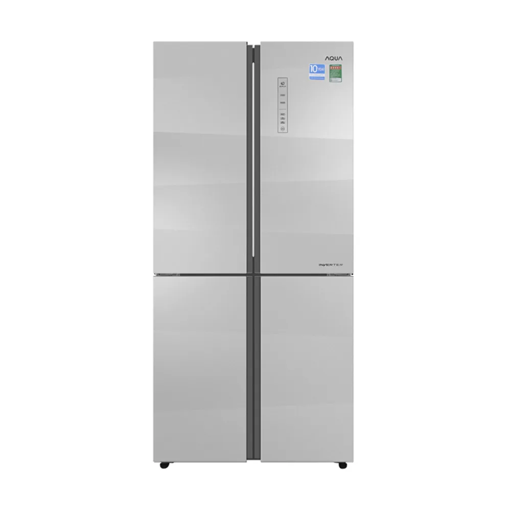 Tủ lạnh Aqua AQR-IG525AM (GS) có tổng dung tích 516 lít với màu bạc trang nhã sẽ tô điểm thêm vẻ sang trọng cho căn phòng bếp nhà bạn. Đây là loại tủ 4 cửa có tráng gương mở về 2 bên, có bảng điều khiển trên cửa tủ rất tiện dụng, đèn chiếu sáng LED, còi báo khi trạng thái mở cửa quá lâu. Tủ trang bị máy nén Inverter tiết kiệm nhiều điện năng khi vận hành, công nghệ làm lạnh khí lạnh đa chiều, bộ khử mùi kháng khuẩn thông minh T.ABT. Bên cạnh đó Tủ lạnh Aqua AQR-IG525AM (GS) có chức năng làm lạnh và cấp đông nhanh, tự động điều chỉnh nhiệt độ bên trong từng ngăn, sản phẩm sản xuất tại Việt Nam có thời gian bảo hành 2 năm trên toàn quốc.