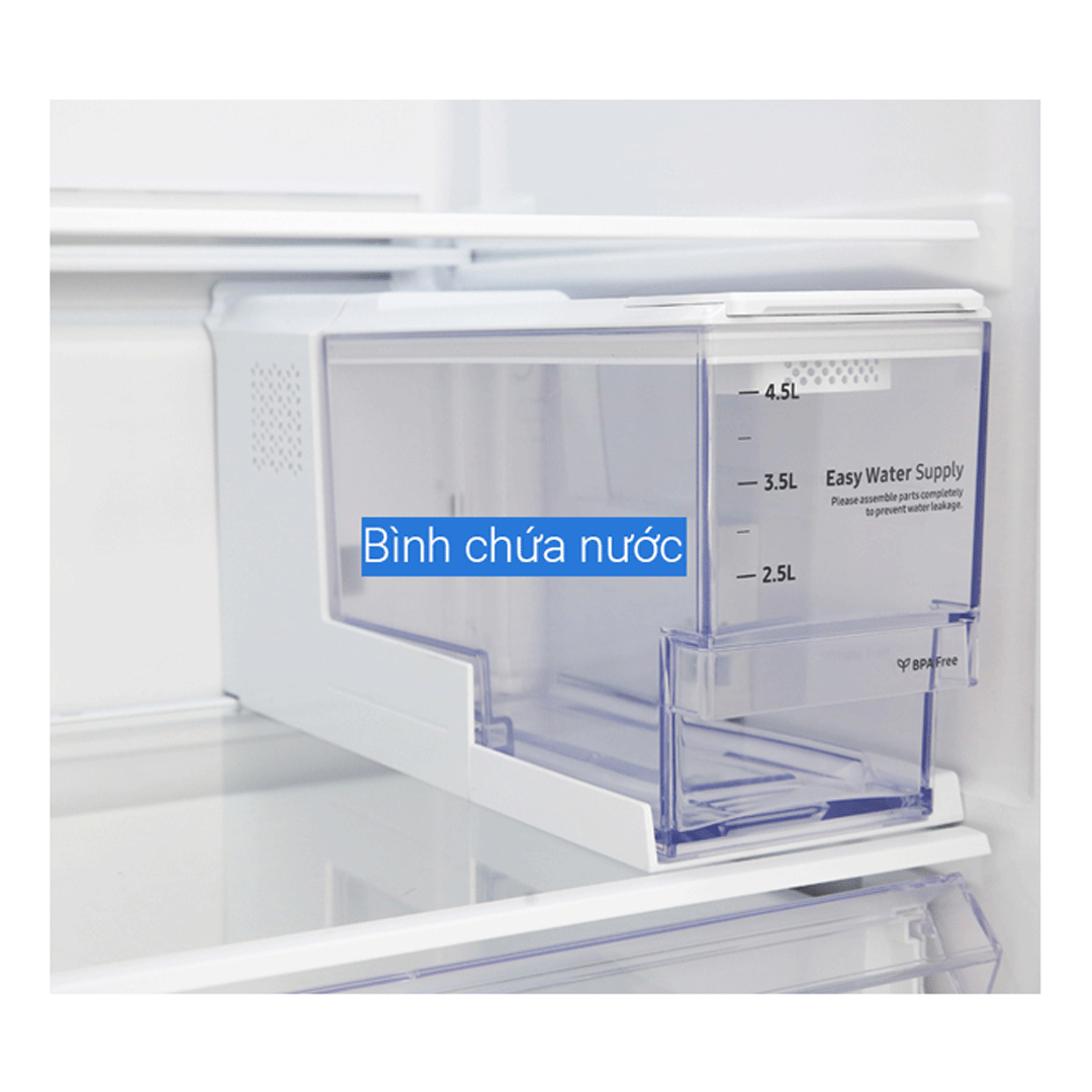 có ngăn lấy nước bên ngoải có dung tích lớn và được thiết kế hoàn hảo bên ngoài tủ lạnh ở vị trí vừa tầm sử dụng của bạn.