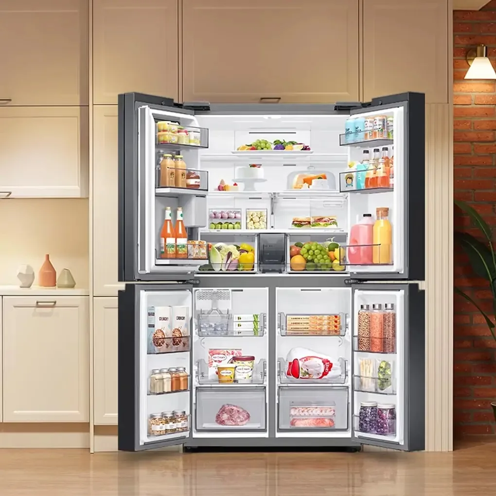 Ngăn đá của tủ lạnh 4 cánh được thiết kế với nhiều ngăn và kệ, giúp bạn dễ dàng bố trí thực phẩm cần đông lạnh một cách gọn gàng và ngăn nắp. Việc sắp xếp và tìm kiếm thực phẩm trong ngăn đá trở nên thuận tiện hơn (mua tủ lạnh trả góp không qua ngân hàng).