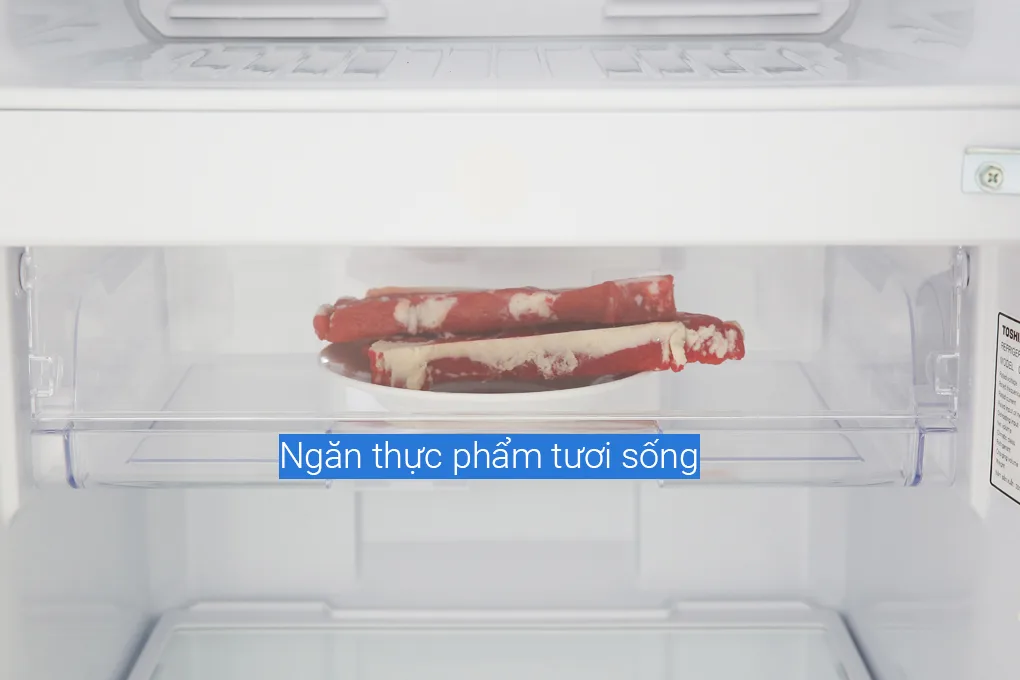 Khay tủ được thiết kế bằng kính chịu lực, tủ lạnh toshiba giúp bạn thoa thích chứa thực phẩm mà không ngại trọng lượng của chúng.